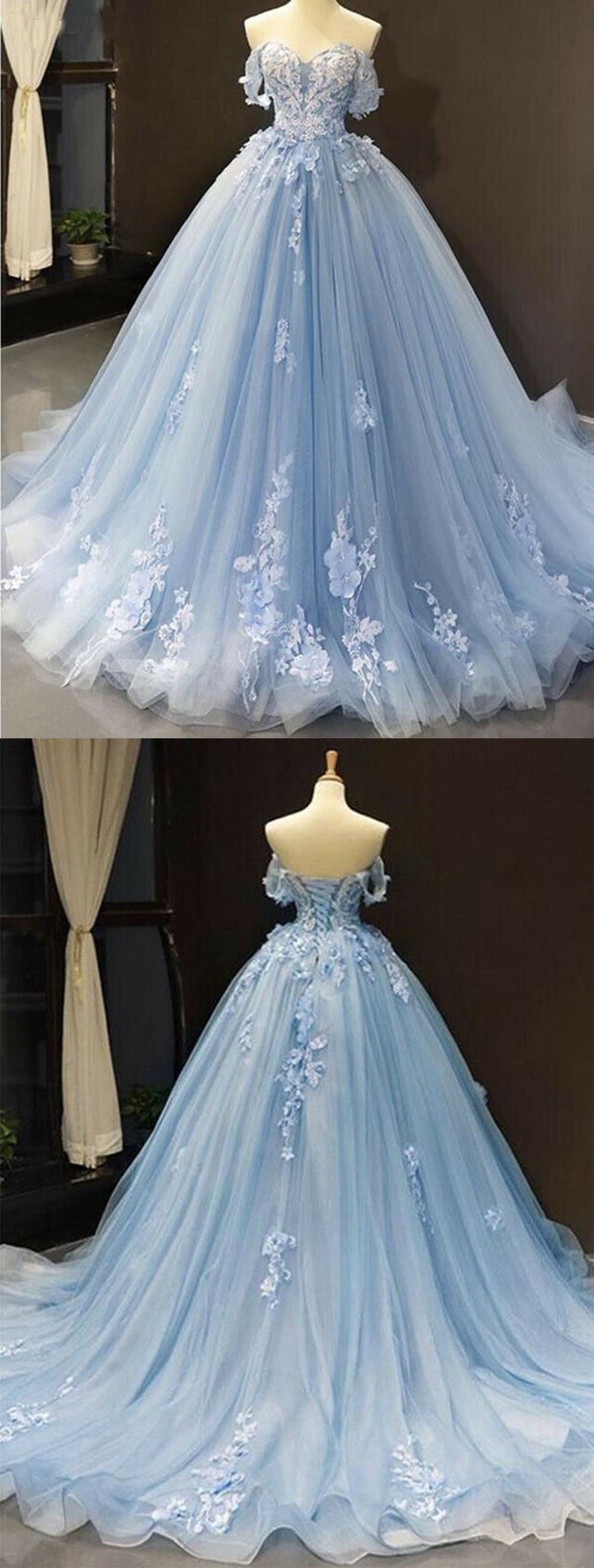 Wdbfy Sparkly Lace Beaded Quinceanera Dresses Ball Gown Off Shoulder Sweet 15 16 Dresses Puffy Tulle Prom Gowns With Train Baby Blue 0 At Amazon Women S Clothing Store
